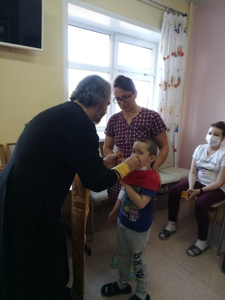 В среду 11 сентября в НИИ Гаматологии причастились 18 хворающих ребятишек, после причастия состоялся водосвятный молебен.